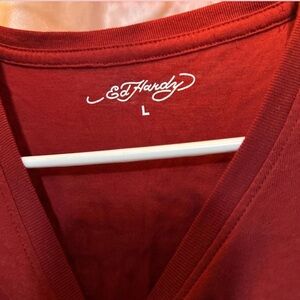 brand new never worn Ed Hardy red and blue heart t-shirt