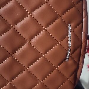 French Connection Quilted Brown Shoulder Bag with Silver Chain