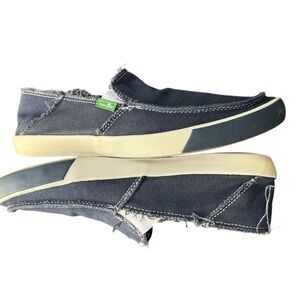 Casual black canvas loafers with a rugged, distressed look. Easy slip-on style for everyday wear.