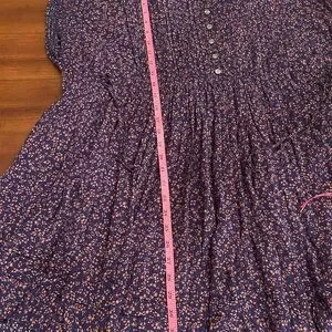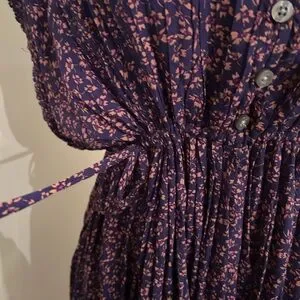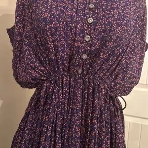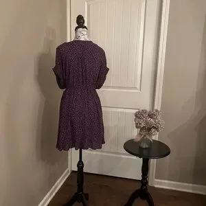 Chic purple dress with floral pattern. Features button front and cinched waist. Perfect for casual outings.