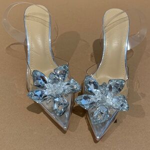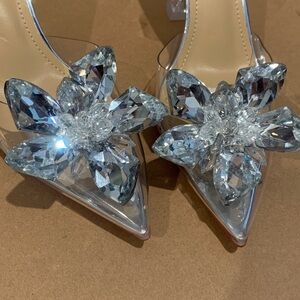Clear pointed-toe heels with Transparent Crystal flower Embellishment