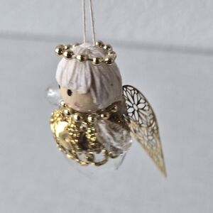 Teardrop Prism Angel Christmas Ornament Gold Tone 2”