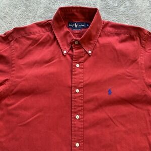 VTG 90s Ralph Lauren Red Cotton Twill Button Down Shirt Men's L Classic Preppy
