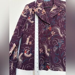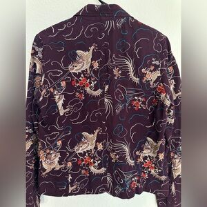 Johnny Was Womens Jacket Blazer Purple Floral Dragon Embroidered size Large