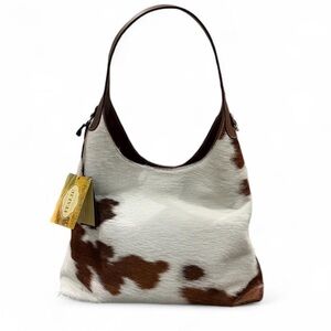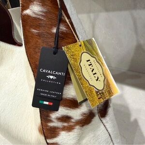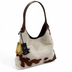 Tags: Cavalcanti, cowhide bag, calf hair, western, cowgirl, boho, cow print, Italian leather, leather hobo, NWT, statement, trendy