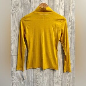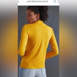 NEW! ANTHROPOLOGIE GAUZY MOCK NECK Long Sleeve Top NWT Size XS Mustard Yellow