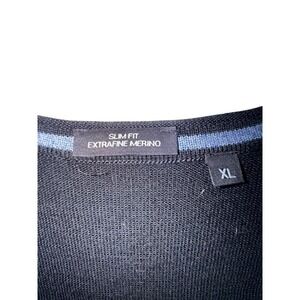 Hugo Boss Slim Fit Extra Fine Merino Wool Black V-Neck Sweater - XL