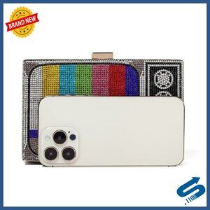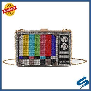 Brand new and in flawless condition — this unique rhinestone clutch delivers a fun, retro look perfect for evening events, parties, travel, or adding sparkle to your daily style. The TV-shaped design and versatile carrying options make it a standout, conversation-starting accessory.