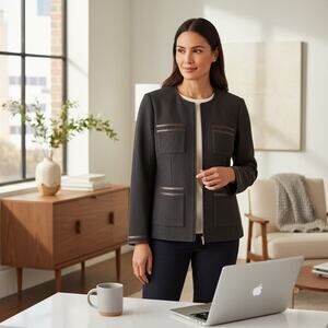 St John Santana Knit Zip Jacket Brown Textured Blazer Pockets Size 8 quietluxury