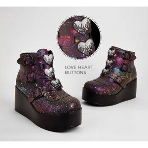 🆕 Navy Reflect Chunky Platform Ankle Boots - Wedge Heel Goth Rave Zip Booties