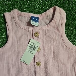 Charming light pink romper. Sleeveless with button front. Ideal for sunny days.
