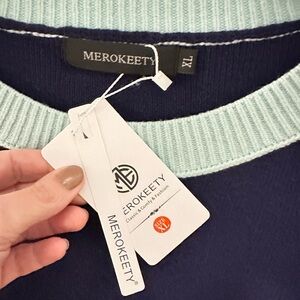 NWT XXL MEROKEETY Oversized blue soft stretchy woman colorblock sweater bohemian