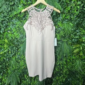 Women Fashion Size Large Dusty Pink Embroidery High Neckline Short Sheath Dress NWT.