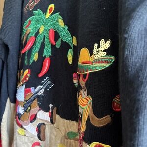 Women's 2X Feliz Navidad Ugly Christmas Sweater 3D Chili Pepper Santa Sombrero