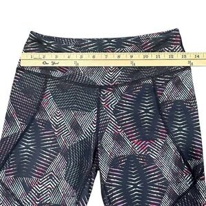 The product is a pair of Patagonia leggings for women in size small. These leggings are designed for activewear and are made of a blend of polyester and elastane. The legs are in a capri style and the color is a navy blue with hints of purple. The compression area is focused on the legs, providing support and comfort during various activities. Perfect for those looking for high-quality activewear that combines style and functionality.