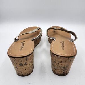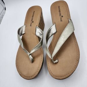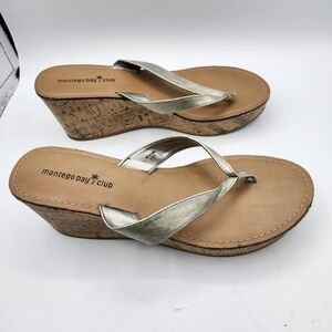 Montego Bay Club Metallic and Tan Cork Wedge Sandals Sz 9