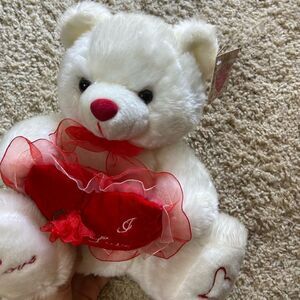 NWT Vtg White “I Love You” Teddy Bear 10” Plush Gift stuffed animal