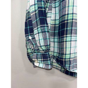 Vineyard Vines Mens Shirt Plaid Linen Slim Fit Trucker Shirt Medium Blue Green W