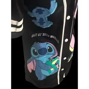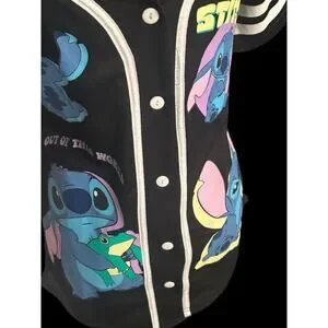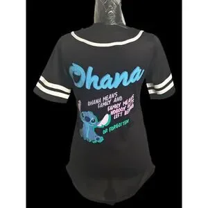 Stitch Disney Women's Baseball Black Jersey Top Size Small-See Dimensions