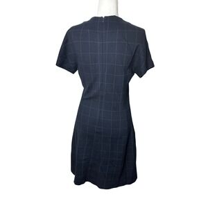 Theory Dolman Mock Neck Dress Windowpane Knit Short Sleeve Navy Size Small