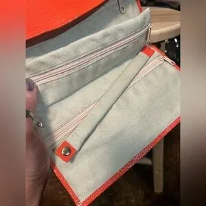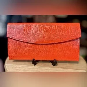 Tangerine Orange Vegan Leather & Velvet Jewelry Accessory Cosmo Wallet Pouch NEW