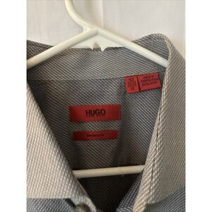 Hugo Boss Button Up Shirt Men 32/33 Gray Modern Fit Line Long Sleeve