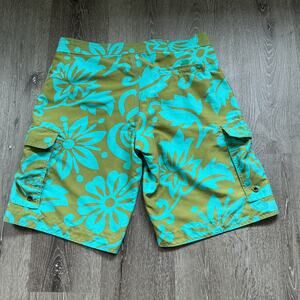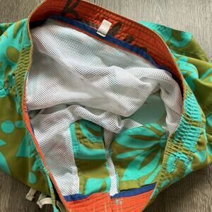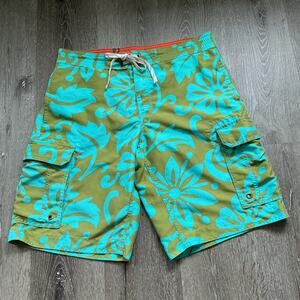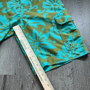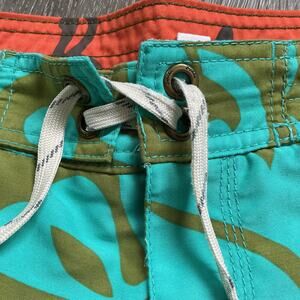 Boden Men's Lined Swim Trunk Board Short Green Blue Tropical Size 34