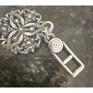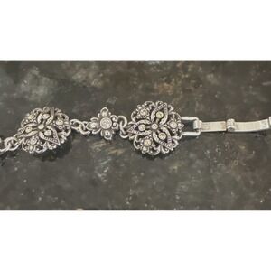 Brighton Empire Lace Retired Crystal Silver Fold Over Clasp Bracelet Boho Sz 7"