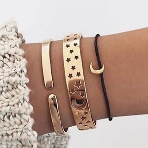 NEW 3pc Gold Cut Out Moon & Star Adjustable Bracelets