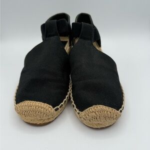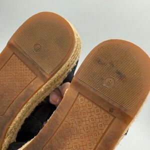 Tory Burch Black Espadrille Wedge Flats Canvas Logo Sandals Slip-on