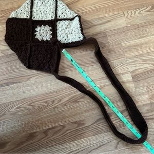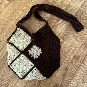 Gently loved brown and tan/cream Crochet Knit Granny Square shoulder / crossbody bag. Loop closure. No holes or stains.