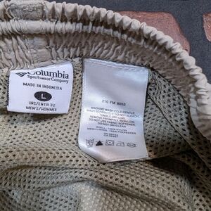 Unleash your inner explorer with these Columbia PFG Men's L convertible pants, engineered for versatility on any trail. Crafted from a lightweight, quick-drying synthetic fabric, they feature zip-off legs and vented cargo pockets to keep you cool when temperatures rise. An inner underwear lining provides added comfort on hot days, while a drawstring waist and zippered back pocket ensure your essentials are secure for all your outdoor adventures.