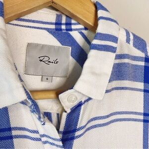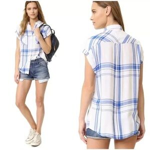 Rails White and Blue Short Sleeve Women's flannel plaid Top, Small, SOFT