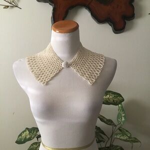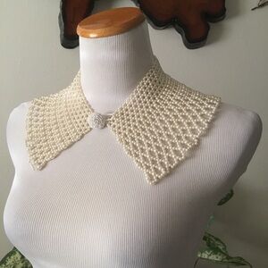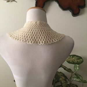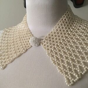 Host Pick- Cream whitish multi Chic pearl wide collar necklace. Pearl button closure. 8.5” double flat for top of collar length. 12” folded in half around bottom length . 4.5” length of necklace. Enhances any outfit. Ideal for special occasions.