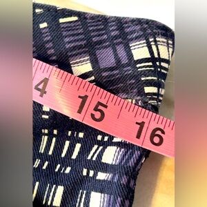 Tory Burch size 28 Conner Tab Front Skinny pants in blue, purple, and white stripes. The pants feature a flat front and low to mid rise fit, with a comfortable stretch. There are two front pockets and two back pockets.