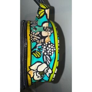 Keywords: Vera Bradley, Lunch Box, Cosmetic Bag, Makeup Bag, Floral, Green, Teal, White, Travel Bag, Round Bag, Zippered Bag, Carry Handle, Organized Storage, Lunch Tote, Small Bag