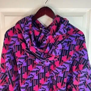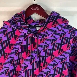 Puma long sleeve hooded pattern fleece sweatshirt. Cropped