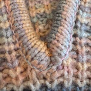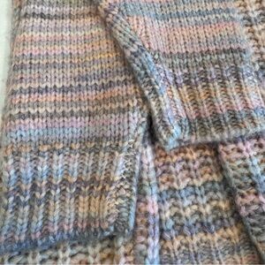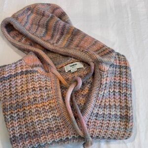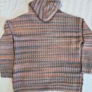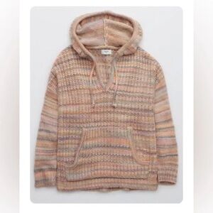 Aerie Oversized Striped Knit Kangaroo Pocket Hooded Sweater - Pink/Gray, Size XS
