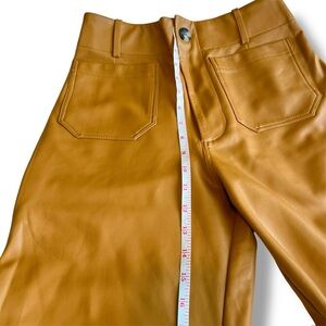 ✰ maeve “the colette” high rise faux leather pants in the color cedar. wide leg with pockets and zip| button closures. tagged size 27 tall, minimal stretch. see photos for measurements. i’m a size small for reference.