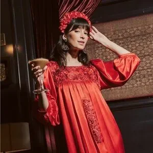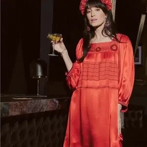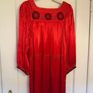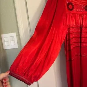 Valentine's Day ready! Never worn satin red embroidered dress. Gorgeous XS