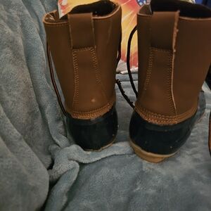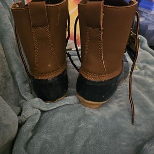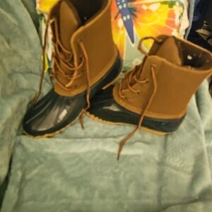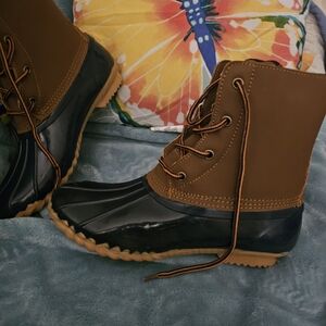 Durable navy and brown boots. Ideal for wet conditions. Comfortable and stylish.