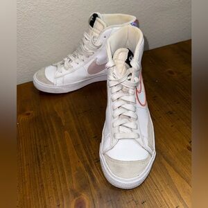 Stylish high-top sneakers with a white base and pink accents. Perfect for casual wear.