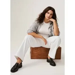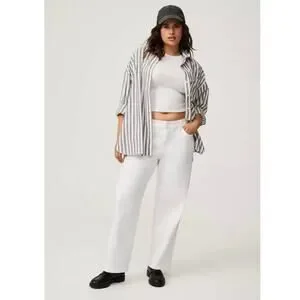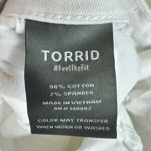 Excellent preowned condition. Torrid White Perfect Wide Leg Vintage Stretch Mid Rise Jeans. Zipper/spandex material. 5-pocket design. Cotton/spandex material. Approx. measurements: Waist 34", inseam 31", rise 9.5". Size 10T.