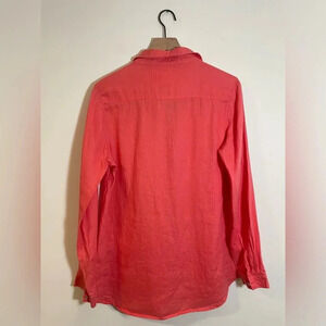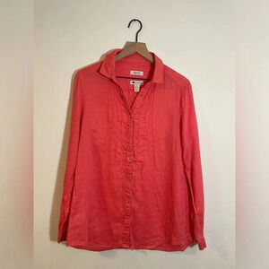 Malvin Hamburg Germany Linen Shirt Womens Large Salmon/Pink ButtonUp Embroidered