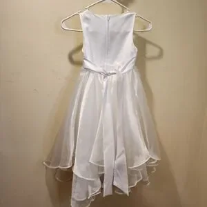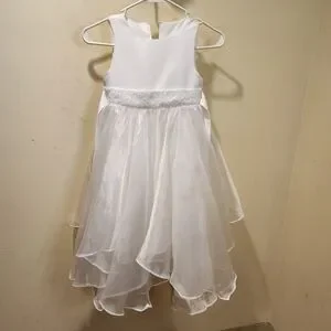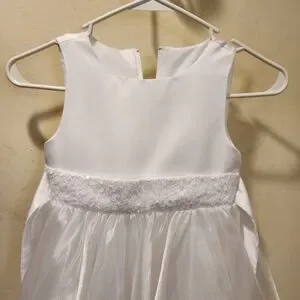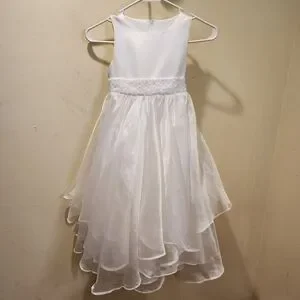 Charming white sleeveless dress with a layered skirt. Perfect for special occasions.
