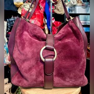 There’s plenty of room for ALL of your stuff in this large capacity tote and it carries so easily. The suede & leather contrast is so striking and the brass accents are perfect.