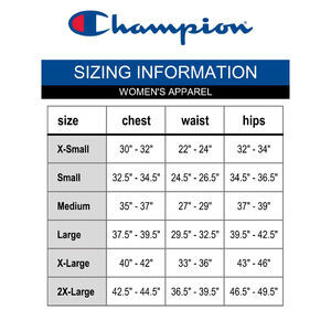 * Applique Champion block print logo center chest. C patch at left sleeve.