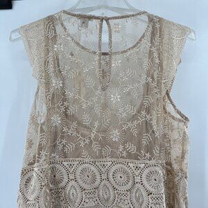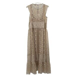 Sundance Faythe Dress Maxi Mesh Floral Long Sleeveless Petite Size PL $268