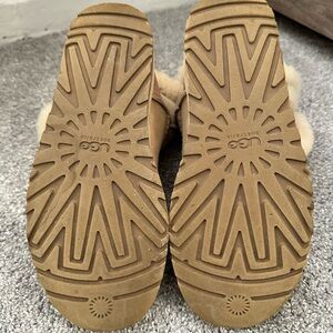 Purchased new and not worn very often. Some minor creasing on the toe but otherwise in great shape with lots of tread on the bottom. The boots were treated with UGG waterproofing at time of purchase. Button and loop are still full functional. Can be worn up or folded over for a shorter look. I do not have the original box.
