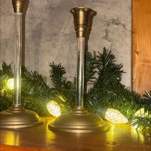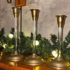 Vintage Lucite & Brass Candlesticks Set of 3 Hollywood Regency Palm Beach Glam